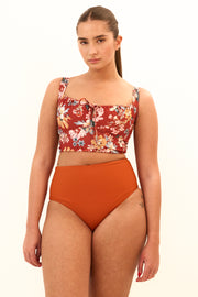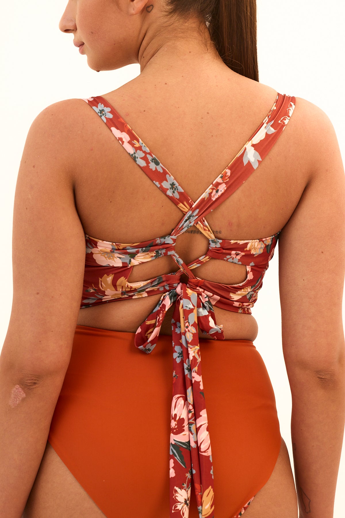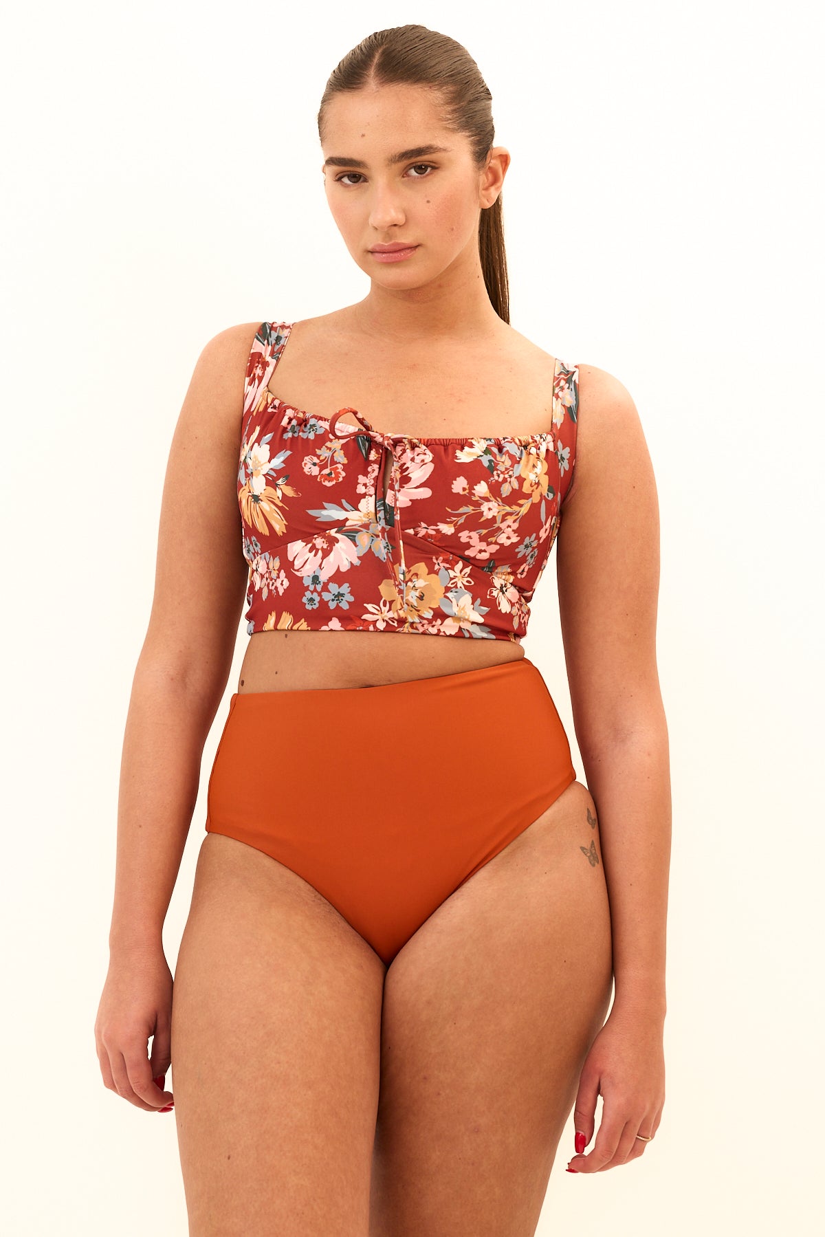 חזיה/טופ בקיני באורך חצי גופיה עם כיווצים מקדימה, תומך ומהמם מאחורה.