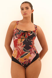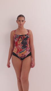 בגד ים שלם כיווצים מקדימה, תומך ומהמם מאחורה.