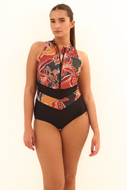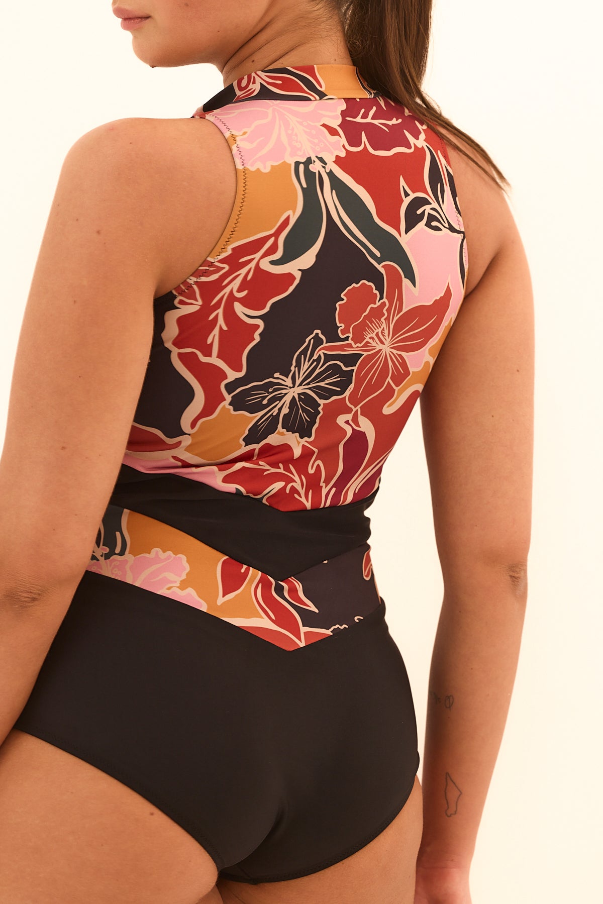 - בגד ים שלם בגזרה ספורטיבית ללא שרוול