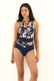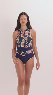 חליפת גלישה קיץ ללא שרוול רוכסן קדמי דפוס Midnight Bloom