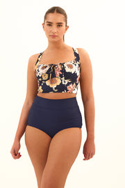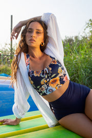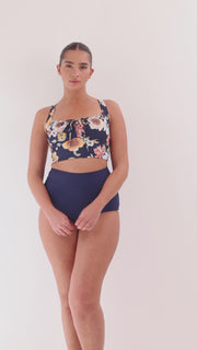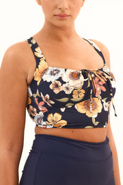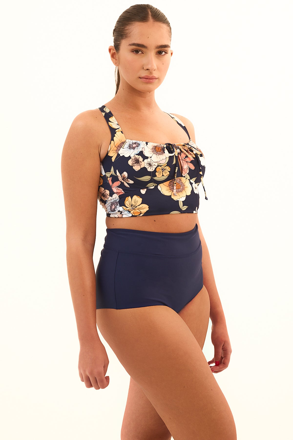 חזיה/טופ בקיני באורך חצי גופיה עם כיווצים מקדימה, תומך ומהמם מאחורה.