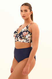טופ בקיני צורת V דו צדדי דפוס Midnight Bloom