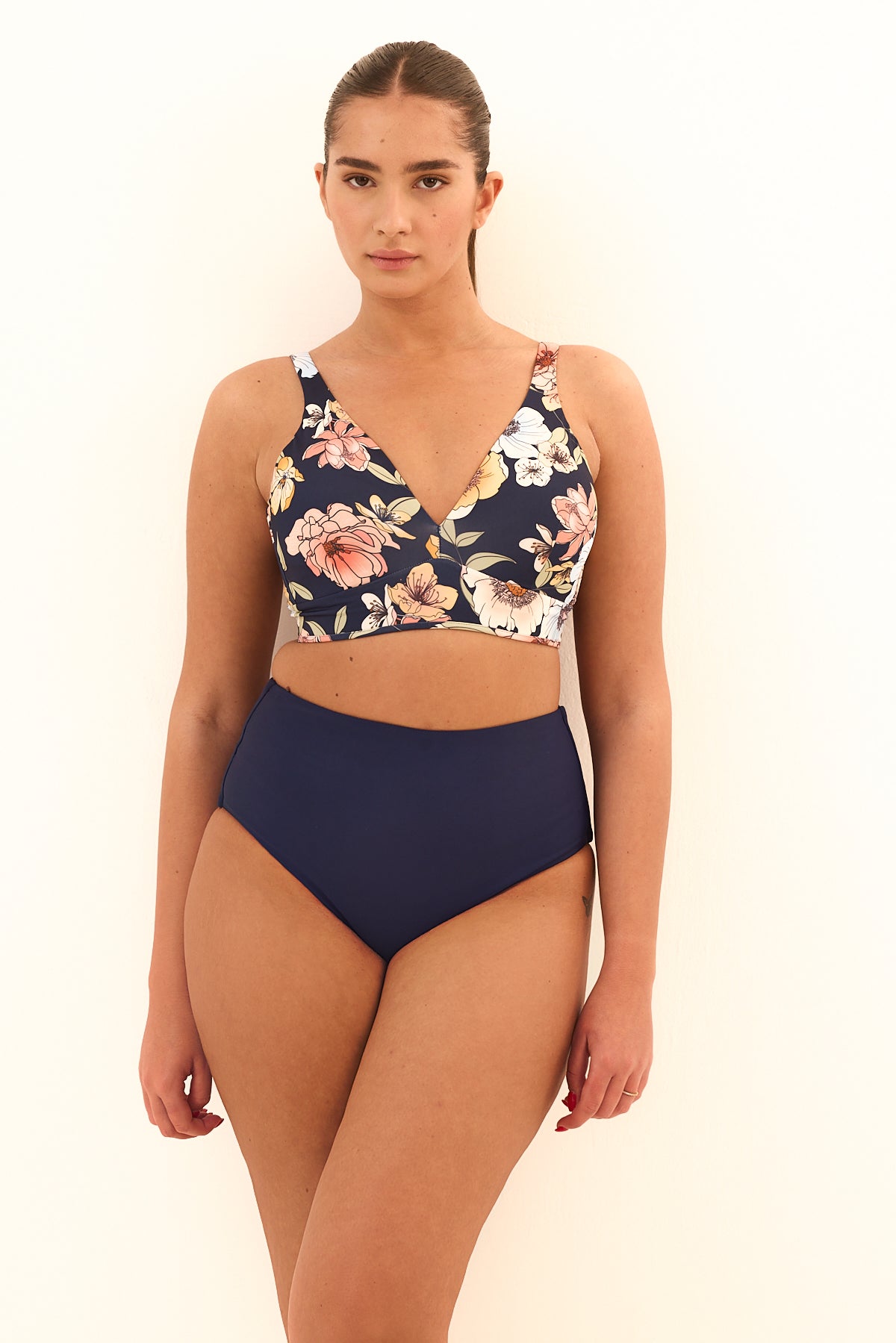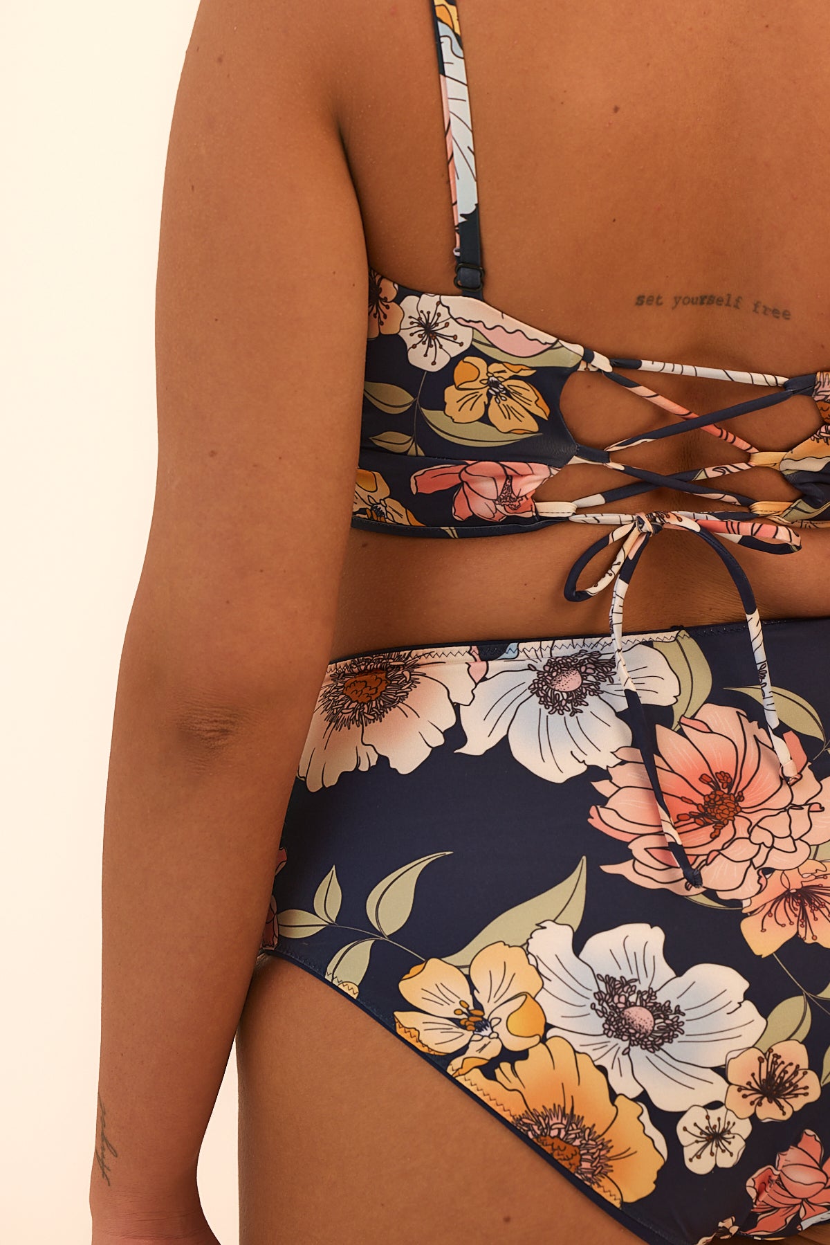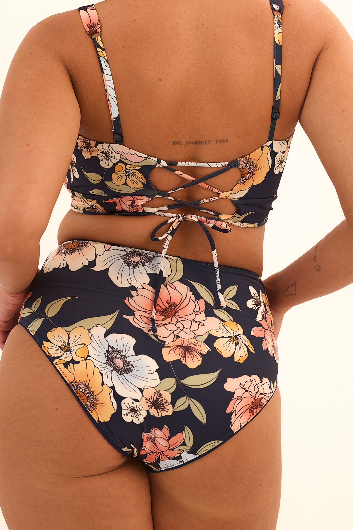 תחתון ביקיני בגזרה גבוהה דו צדדי דפוס Midnight Bloom