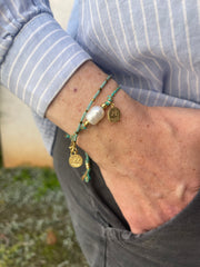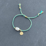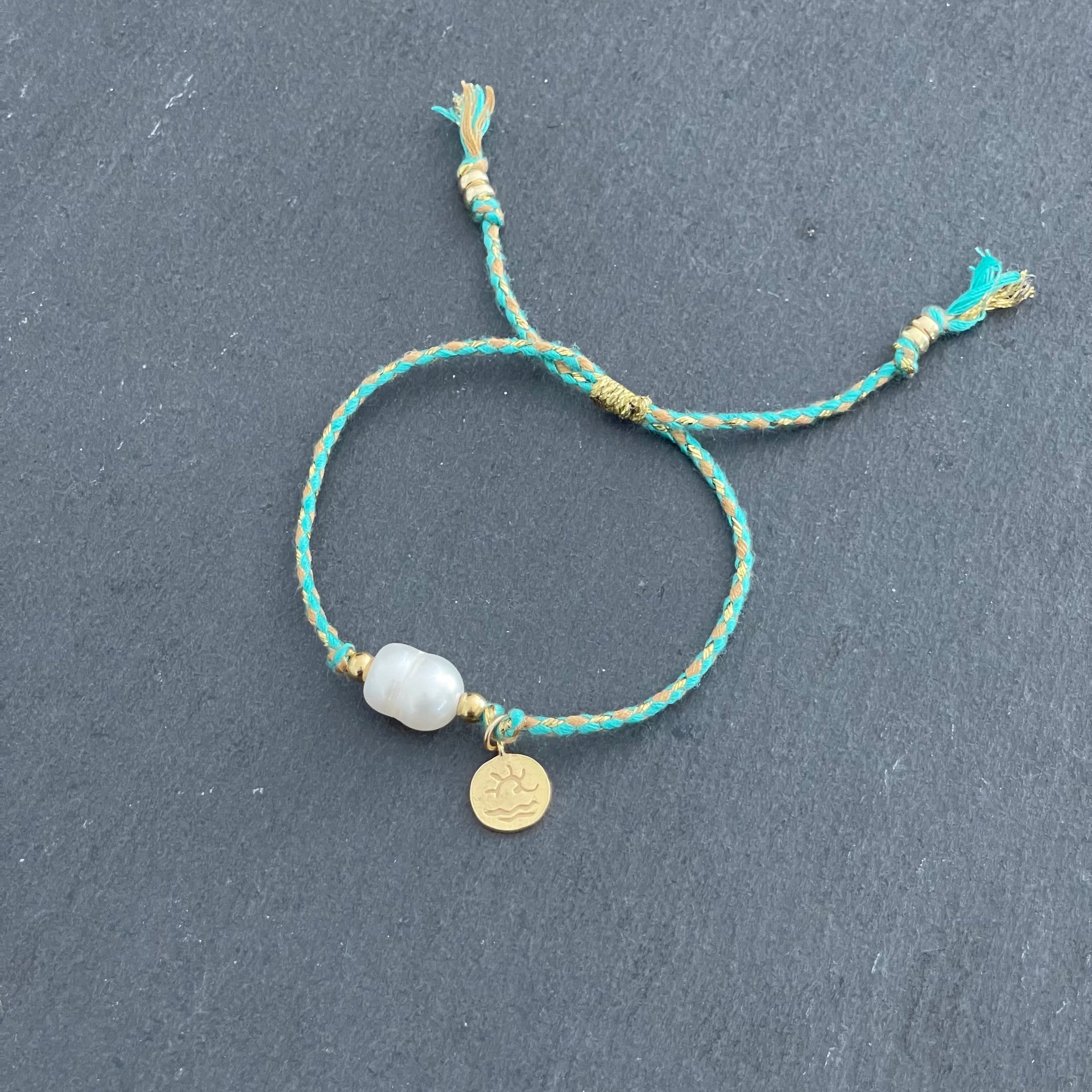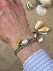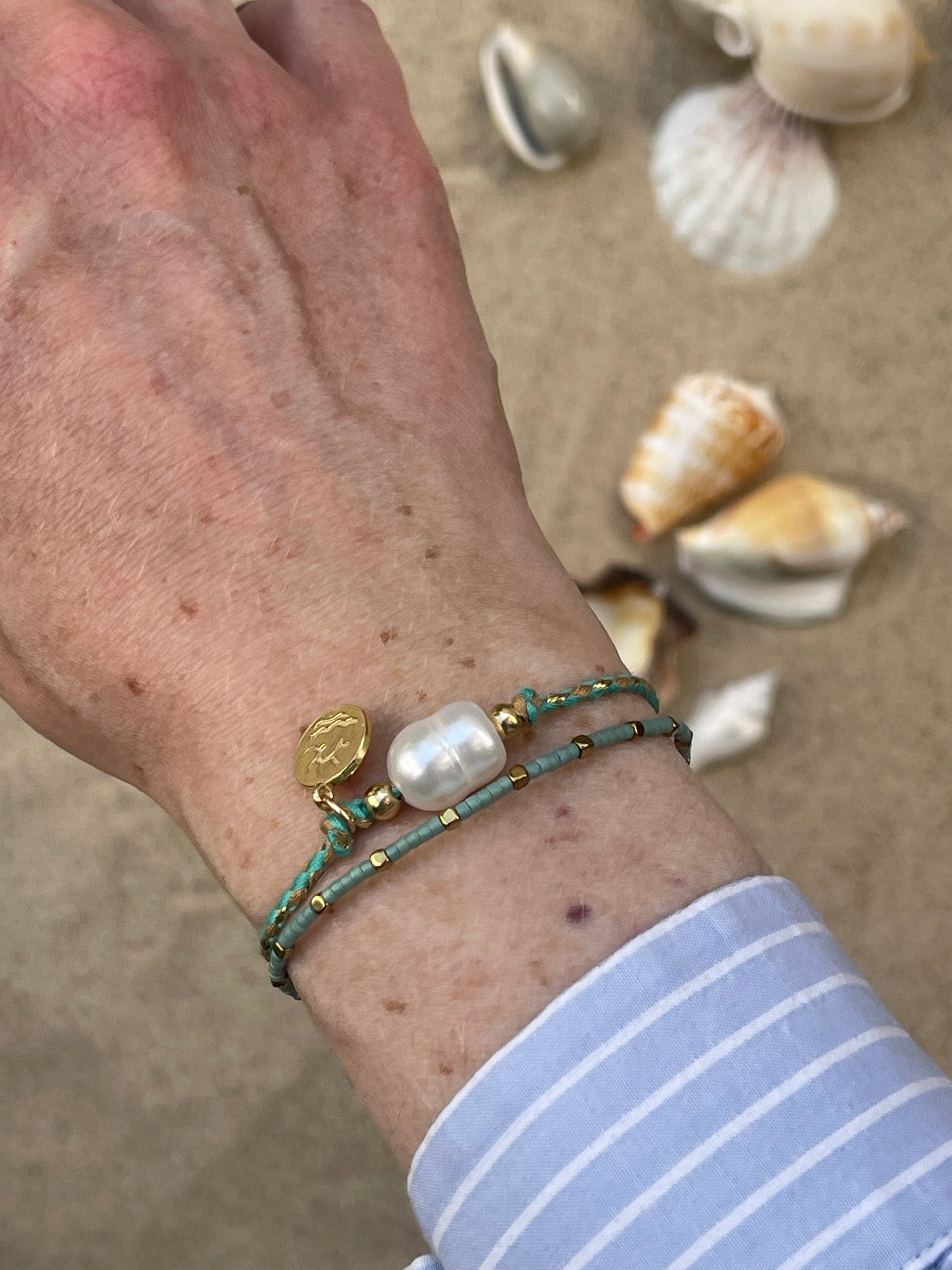 צמיד פנינה חוט טורקיז זהב- הוואי