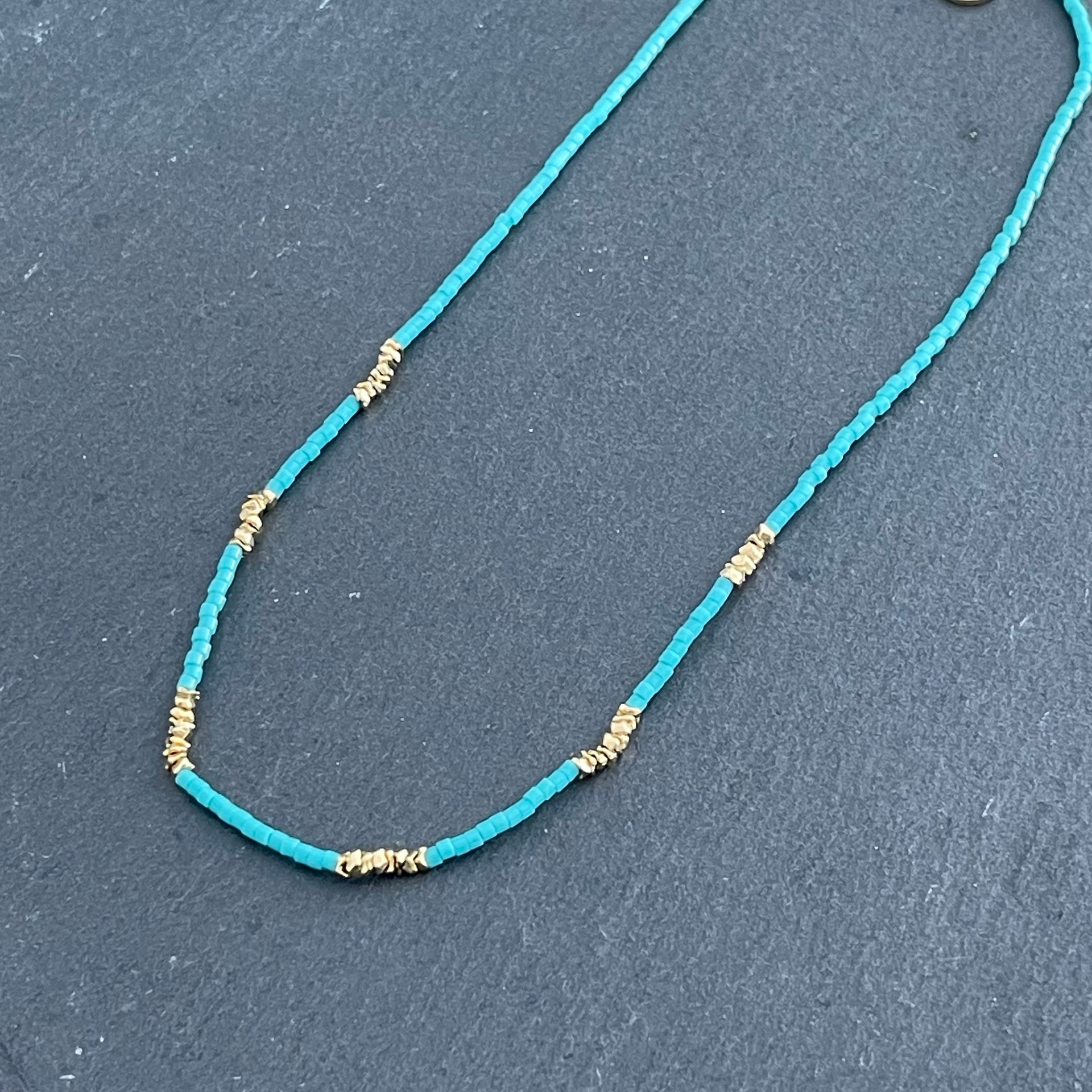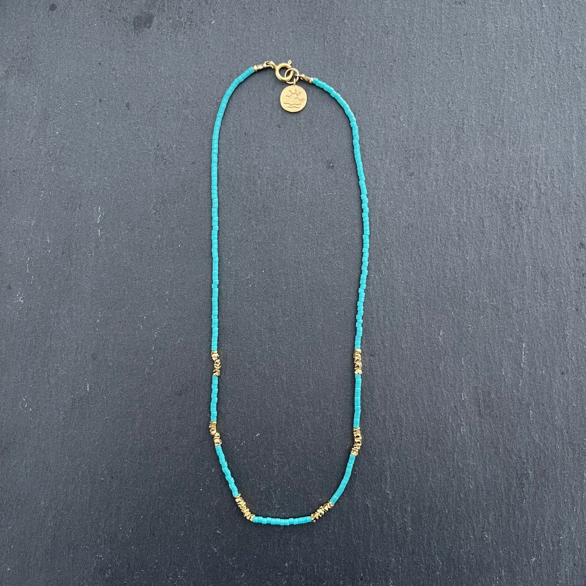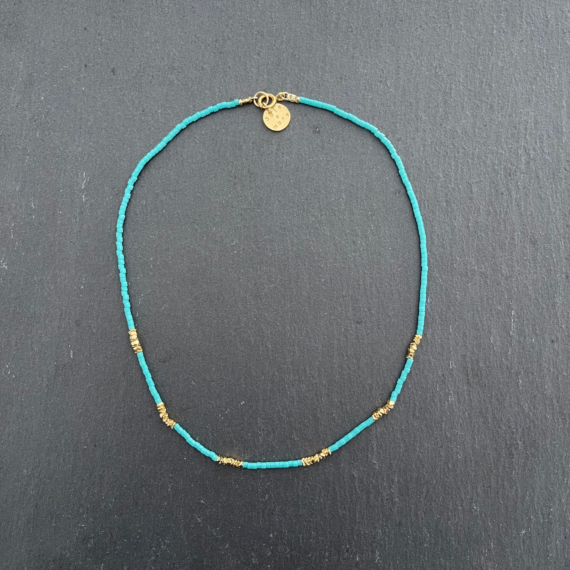 מיוצרת בעבודת יד מכסף 925 בציפוי זהב מיקרוני היפואלרגני עמיד ואיכותי וחרוזים יפנים בצבע טורקיז .
