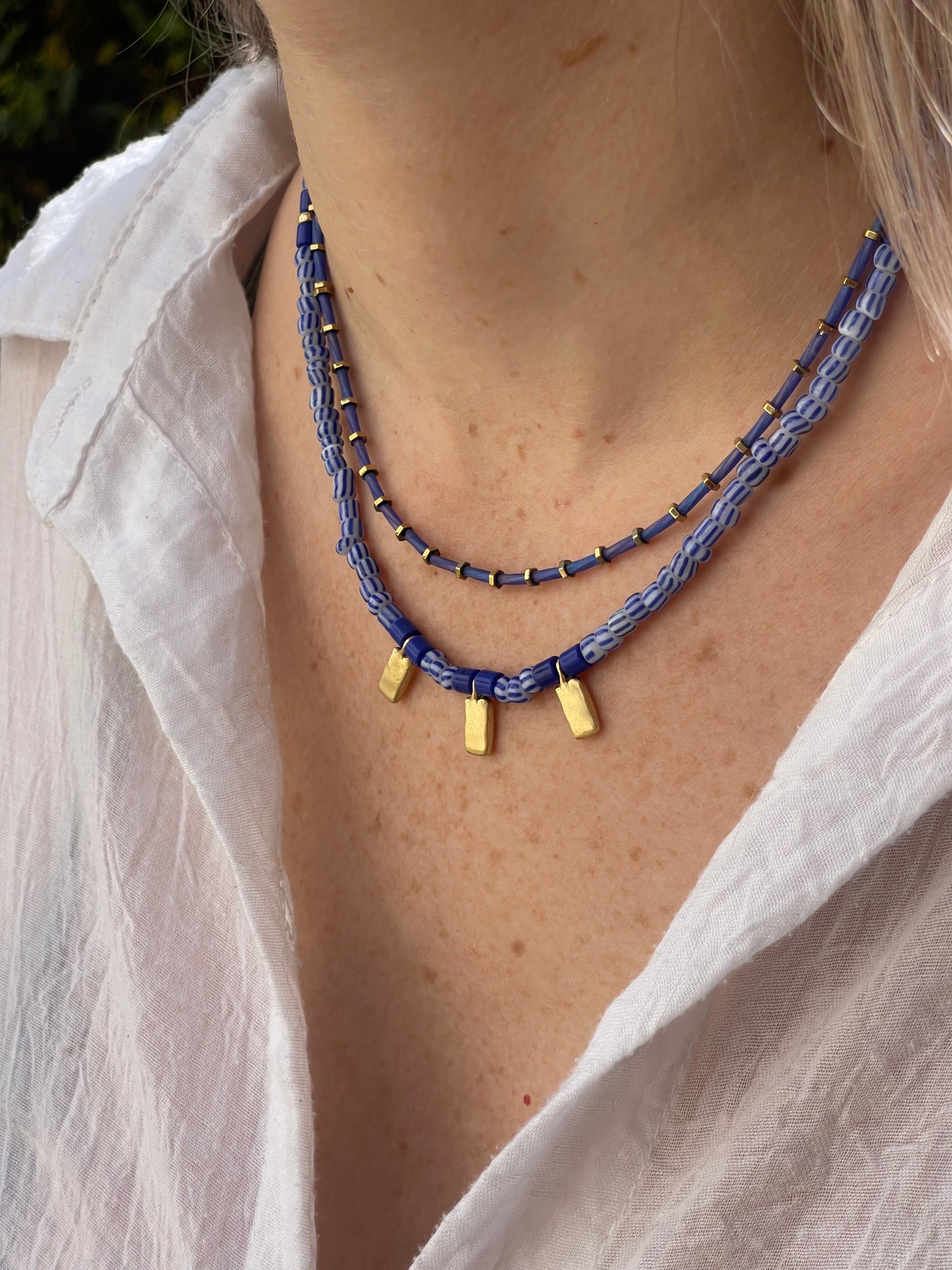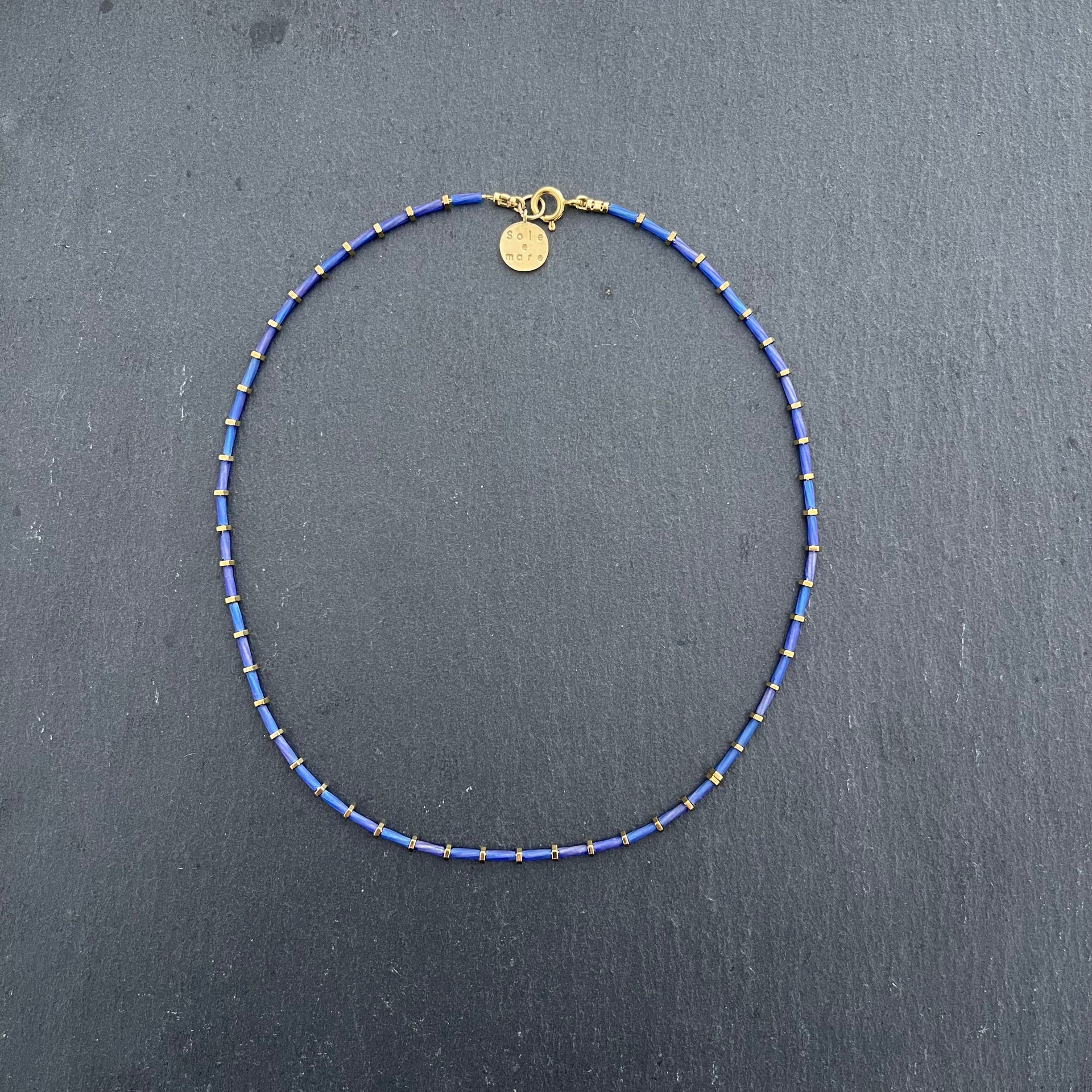 שרשרת קלילה ועדינה במראה יוקרתי במיוחד בצבעי זהב וכחול רויאל. בהשראת חופי פאלמה בספרד. מושלמת לבדה או בשילוב עם כל שרשרת שתבחרי לענוד.